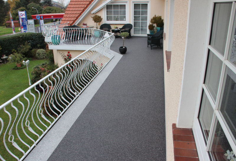 Naturstein und Flüssigkunststoff ergeben in Kombination einen strapazierfähigen, modernen Belag für Wohnzimmer, Bad, Flur oder auch Ihre Terrasse oder Balkon im Außenbereich.